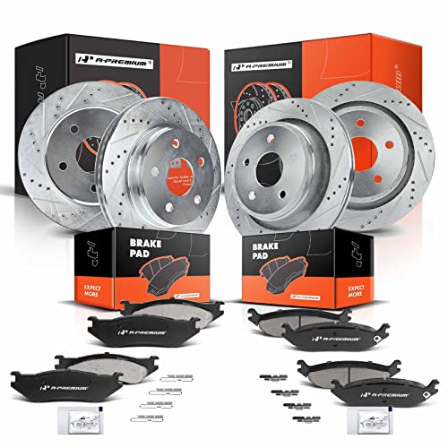 A-Premium Front & Rear Drilled and Slotted Disc Brake Rotors + Ceramic Pads Kit Compatible with Select Chrysler, Dodge and Ram Models – Ram 1500 06-10, 1500 11-18, Durango 07-09, Aspen 07-09