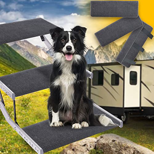 Aucuda RV Step Covers Slip Prevention Steps Rug for RV Steps, Wrap Around Stair Carpet for Manual&Auto Camper Ladders, Travel Trailers Treads, Tough RV Step Mat Easy Install (3 Pack 23Wide Grey)