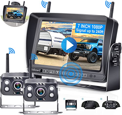 Are you looking for a reliable and high-tech backup camera kit for your truck or RV? The AMTIFO RV Backup Camera Wireless HD 1080P Trailer Bluetooth Rear View Cam System is the perfect choice. This system has an impressive 7-inch capacitive touch key sensor display, dual antennas, and a waterproof IP rating of 69. It also comes with a Furrion bracket and pigtail wire for Furrion Pre-Wired RVs. With its simple setup, you can be sure that you will have a reliable and clear view of your surroundings while driving in reverse.